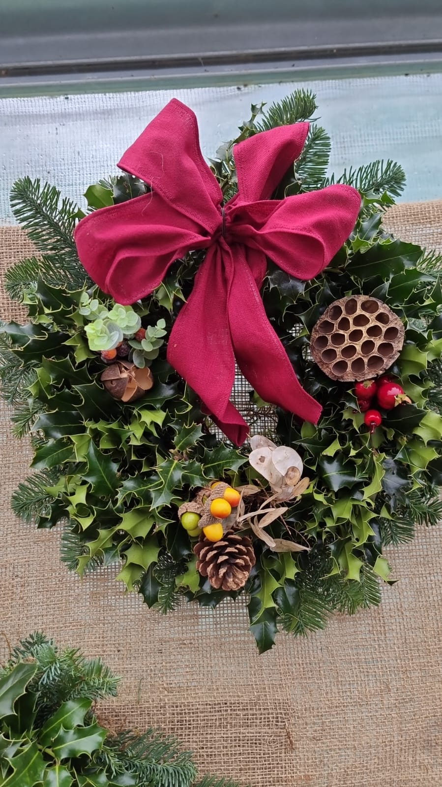 Hand made in Staffordshire by our nimble fingered wreath makers, with all fresh holly and spruce harvested from our own farm.
