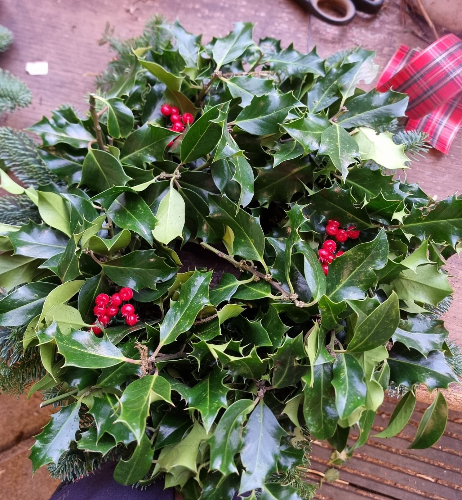 Hand made in Staffordshire by our nimble-fingered wreath makers, with all fresh holly and spruce harvested from our own farm.