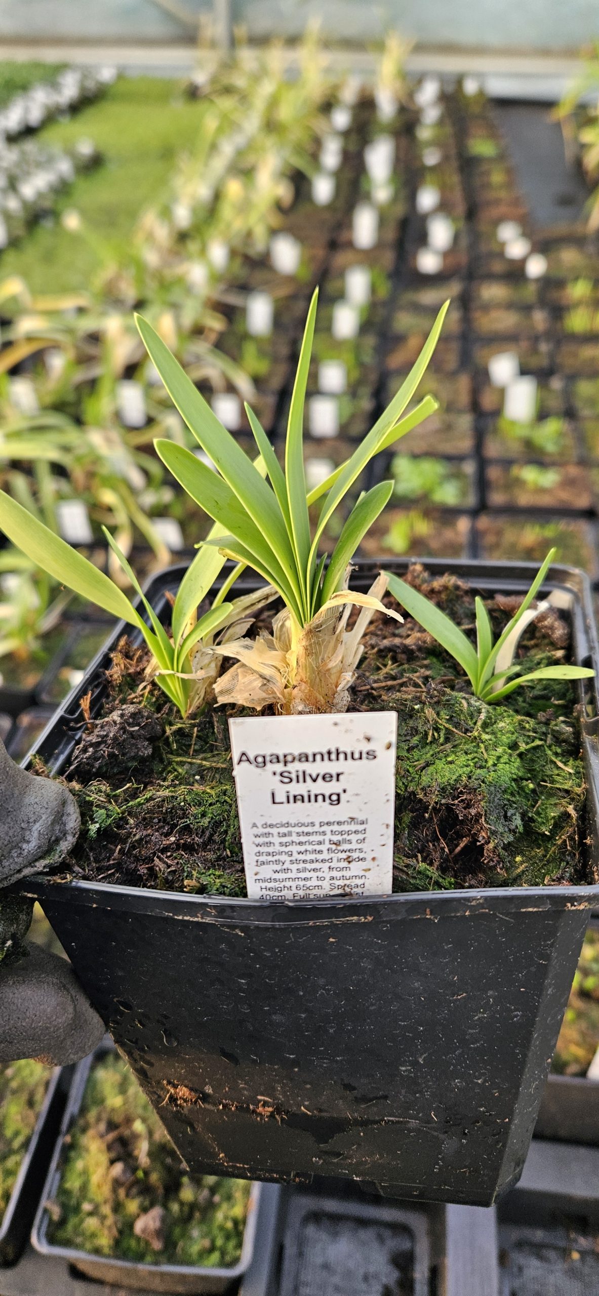 Spring: Apply a balanced, slow-release fertiliser in early spring to support new growth and flowering. This helps Agapanthus ‘Silver Lining’ produce its striking flowers throughout the growing season.