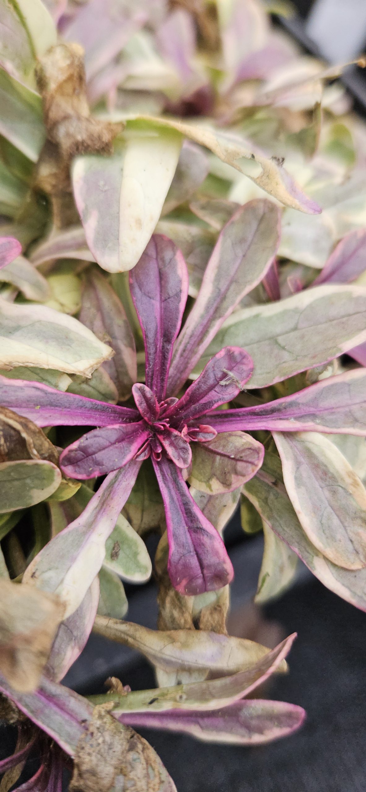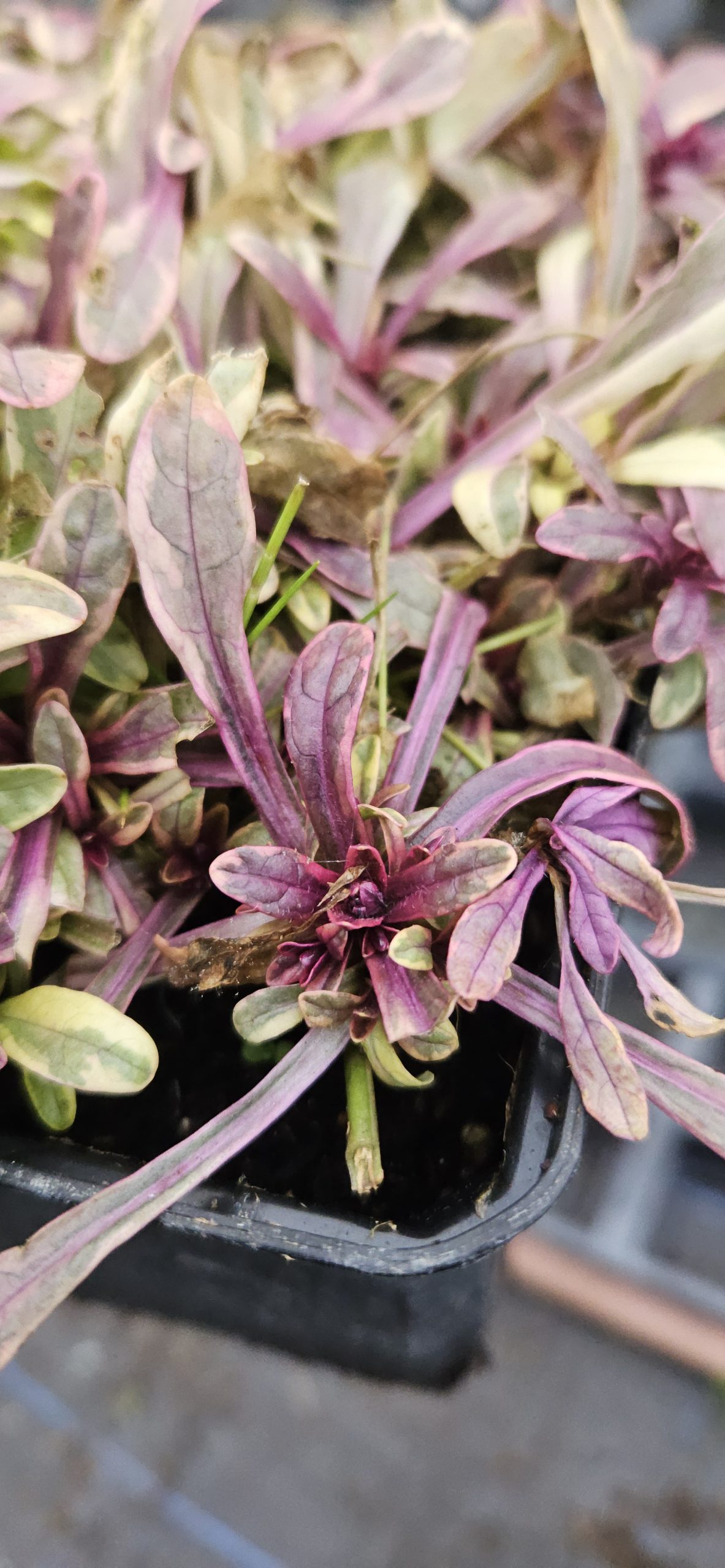 Ajuga tenorii ‘Princess Nadia’ is a low-growing, creeping perennial that does not require staking or structural support. Its compact habit makes it ideal for borders, containers, and ground cover.