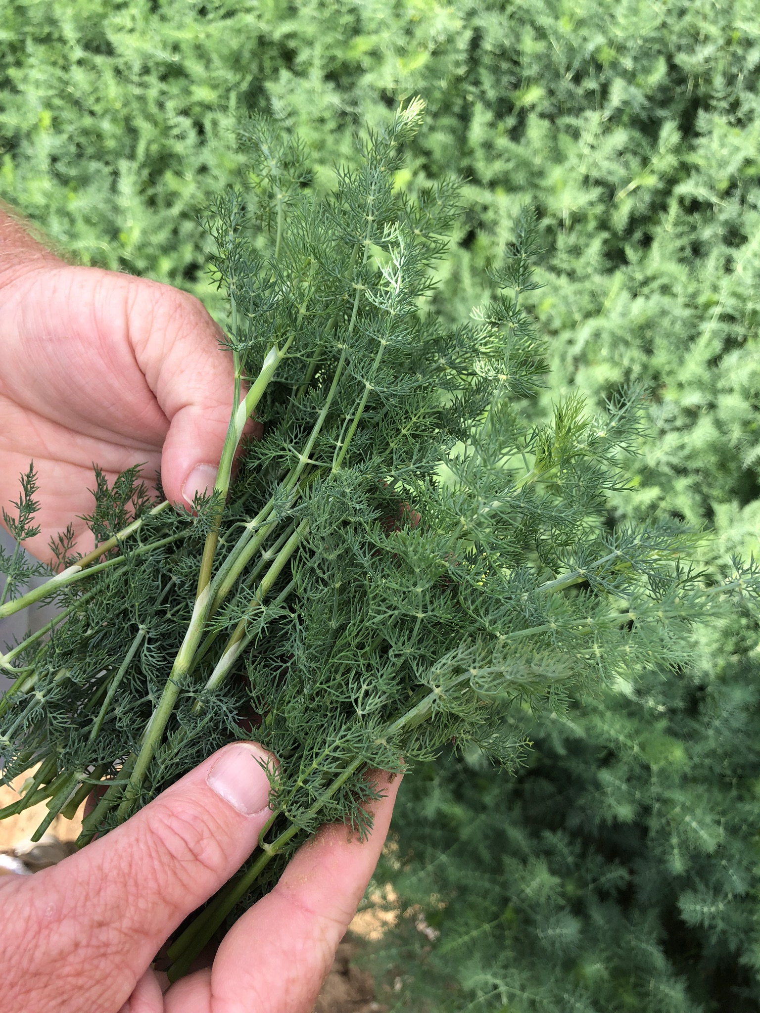 Harvest leaves regularly to encourage fresh growth and prevent the plant from becoming leggy. Removing flower heads can extend the leaf harvest period for Anethum graveolens Yakima.