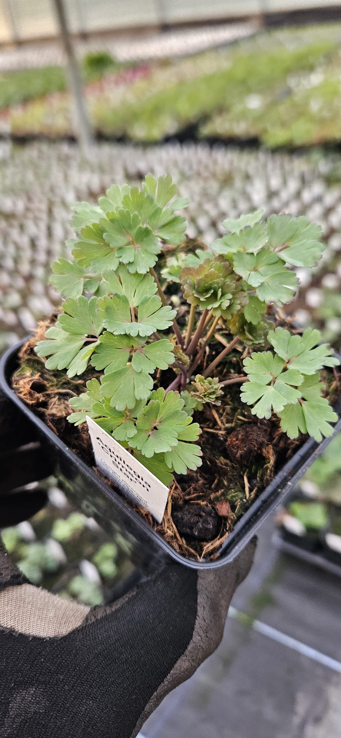 Upright perennial with fern-like, blue green foliage. Pendant flowers with red sepals and creamy white petals from late spring to midsummer. Height 50cm. Spread 45cm. Full sun/partial shade. Attracts bees and butterflies. Hardy.