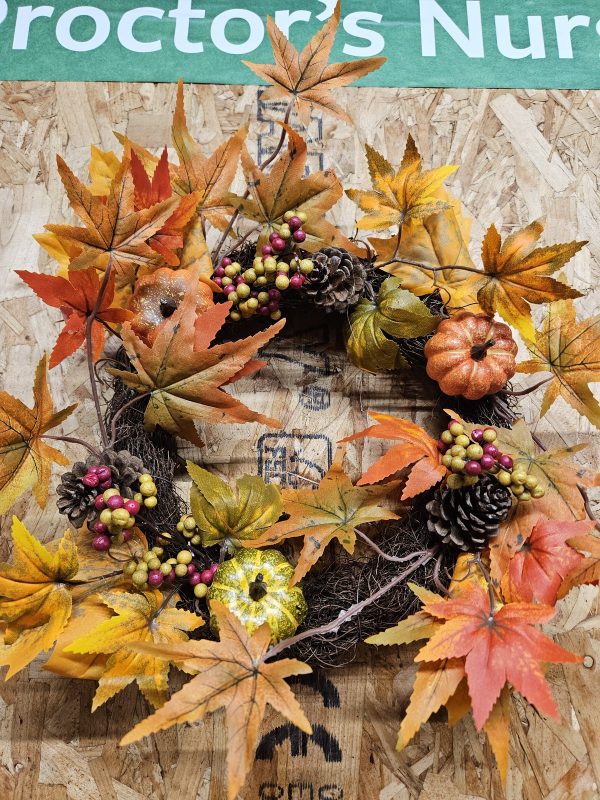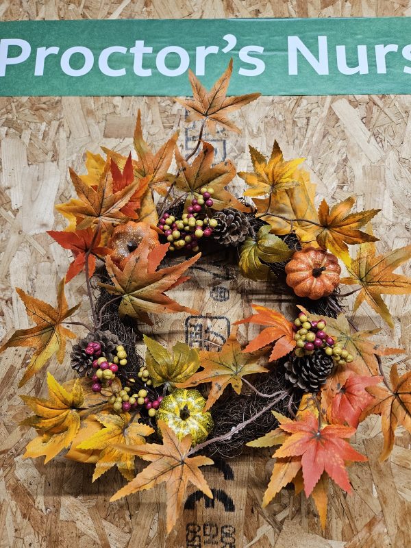 Our artificial autumnal wreath brings the rich, warm hues of autumn indoors or to your front door with a touch of lasting charm. Designed with lifelike elements like vibrant red and golden maple leaves, rustic pinecones, faux berries, and mini pumpkins, these wreaths capture the season’s essence without the worry of wilting or decay. Creating a cozy, inviting look. Whether hung on a door or as part of a seasonal display, an artificial autumn wreath adds a timeless touch of decor, perfect for celebrating harvest themes and the festive warmth of the season all season long.