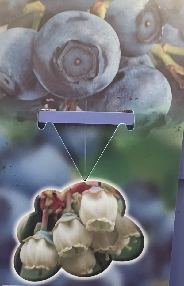 Highbush, Blueberry. A dense upright shrub with arching stems of green leaves, turning red in autumn. Pale pink to white flowers in late spring are followed by edible, sweet blue-black berries. Max Height 1.5m. Max Spread 1.5m. Flowers May to June. Fruits July. Full sun/partial shade. Hardy. Back-fill with soil mixed with peat substitute and a suitable fertiliser.