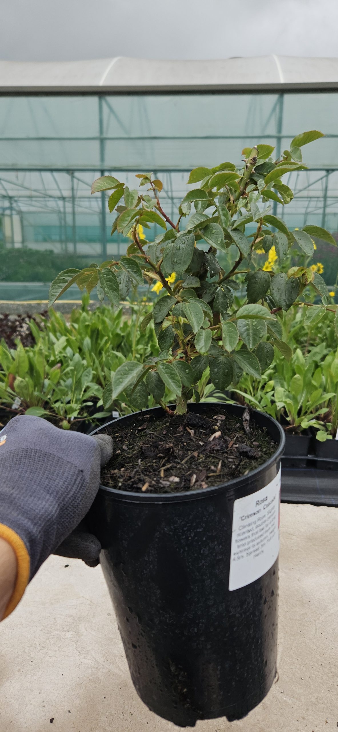 Climbing Rose. Slightly scented, double crimson flowers that last for a long time produced from mid summer to autumn. Height 4.5m. Spread 3m. Full sun. Hardy.