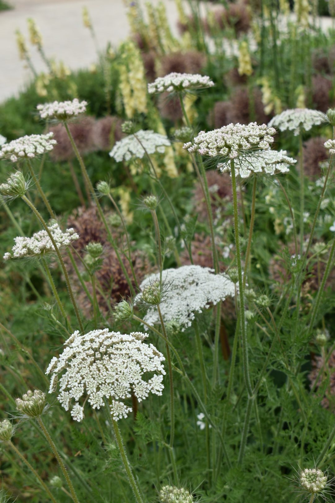 Thanks to its upright habit and flexible stems, Daucus carota rarely requires staking. However, planting in groups provides natural support and enhances its soft, cloud-like appearance.