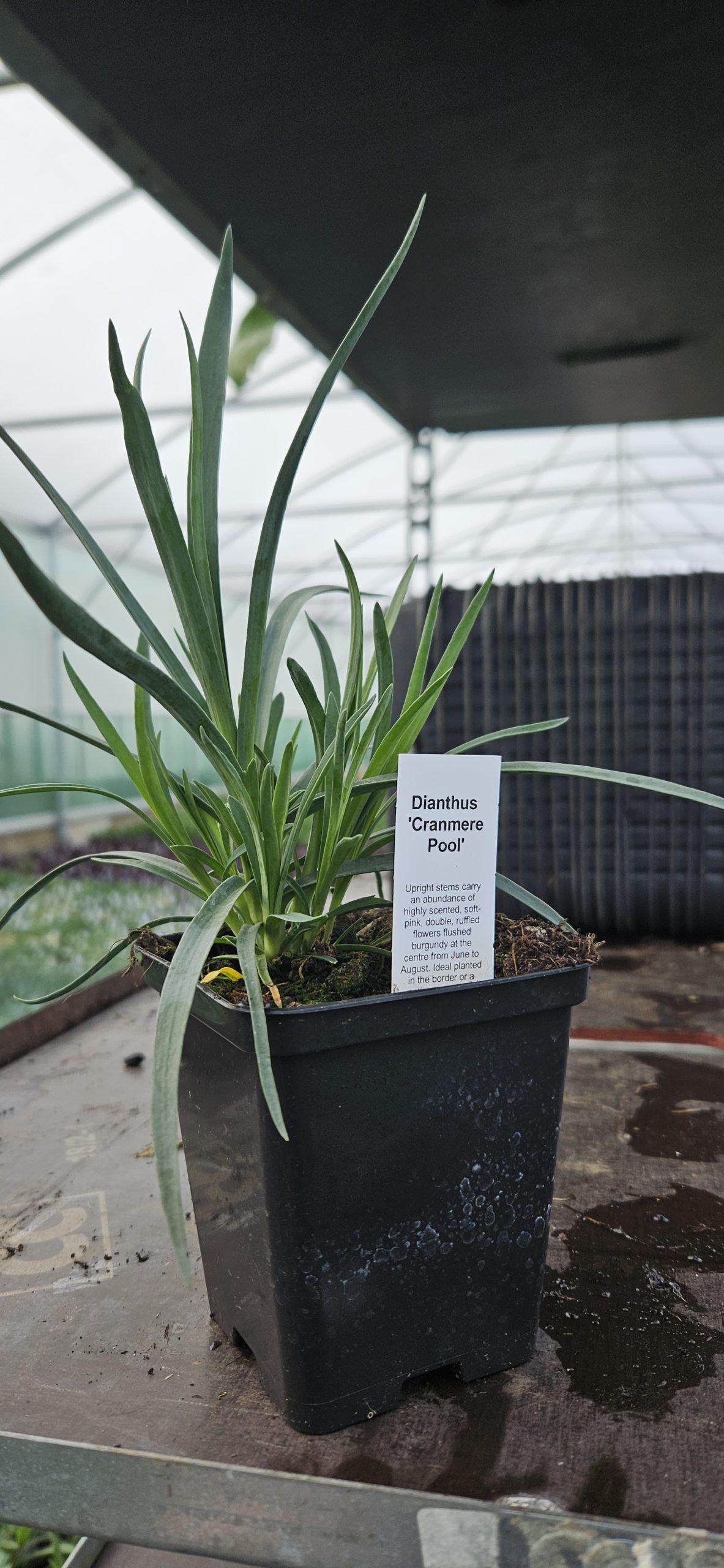 Dianthus ‘Cranmere Pool’ is a delightful perennial with upright stems carrying an abundance of highly scented, soft-pink, double, ruffled flowers flushed with burgundy at the centre. Blooming from June to August, this compact variety reaches around 30cm in height and spread, making it ideal for borders, rock gardens, or patio containers where its fragrance can be enjoyed up close.