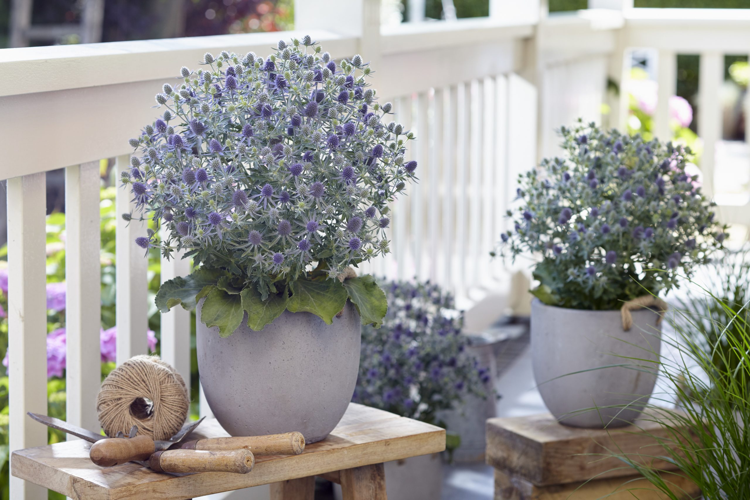 With full sun and well-drained soil, Eryngium ‘Magical Blue Globe’ will produce long-lasting flowers and provide excellent structure and colour in borders and gravel gardens.