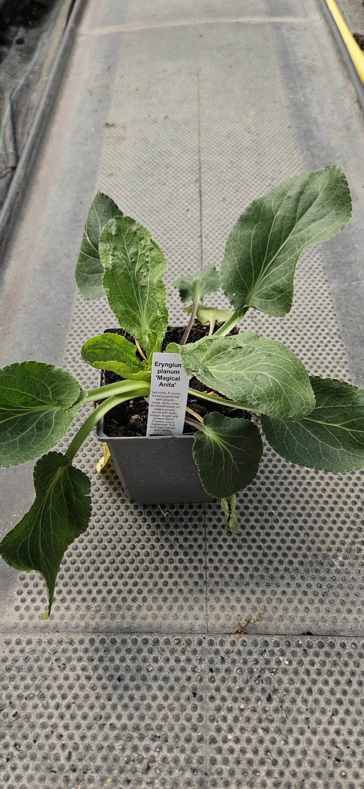 - Staking: Eryngium planum ‘Magical Anita’ typically grows to about 50 cm tall with spiky flowers on sturdy stems. However, if you live in a particularly windy area, you may need to stake the plant to prevent damage.
