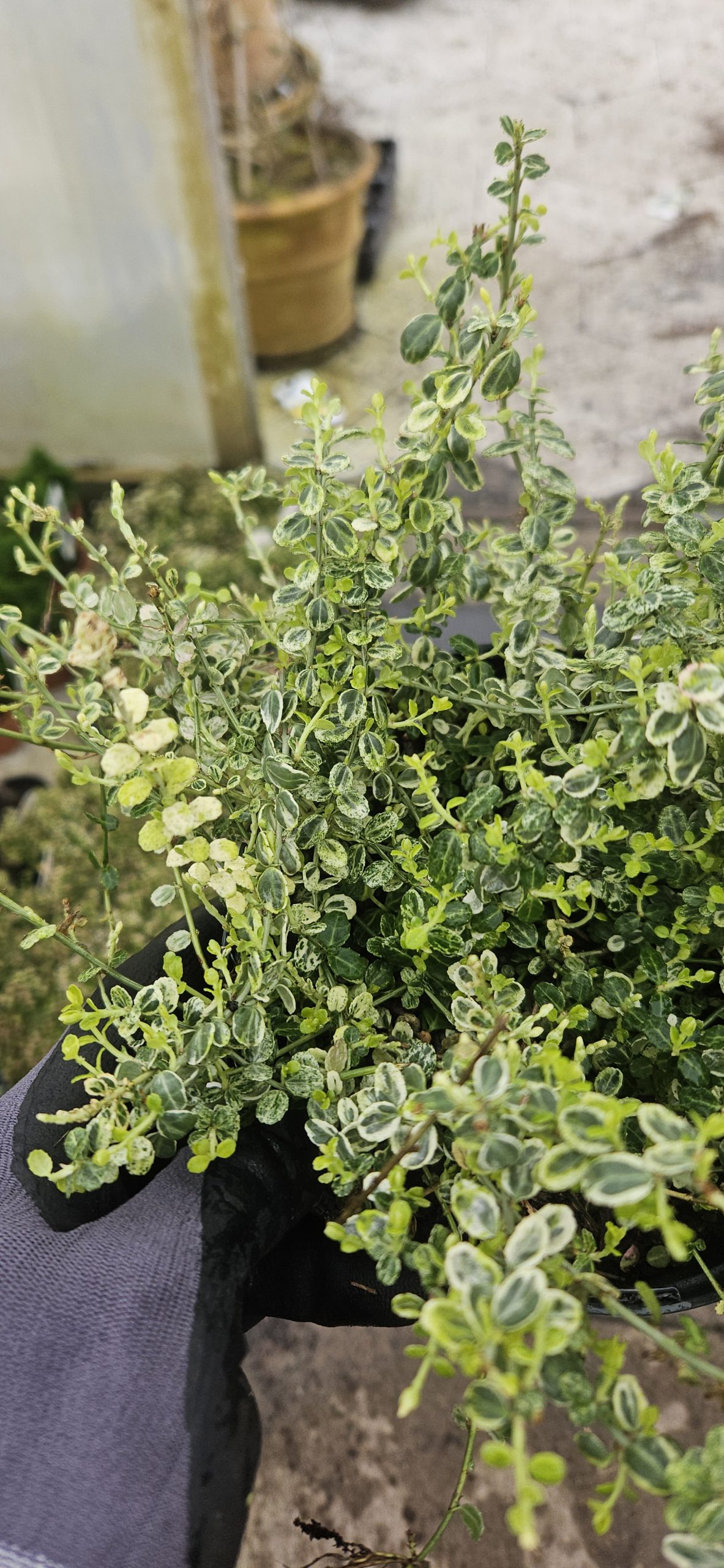 Euonymus fortunei ‘Silver Carpet’ is a low-growing, spreading evergreen shrub valued for its attractive grey-green foliage edged in white. Ideal for ground cover, edging, or containers, Euonymus fortunei ‘Silver Carpet’ adds year-round interest with minimal maintenance.
