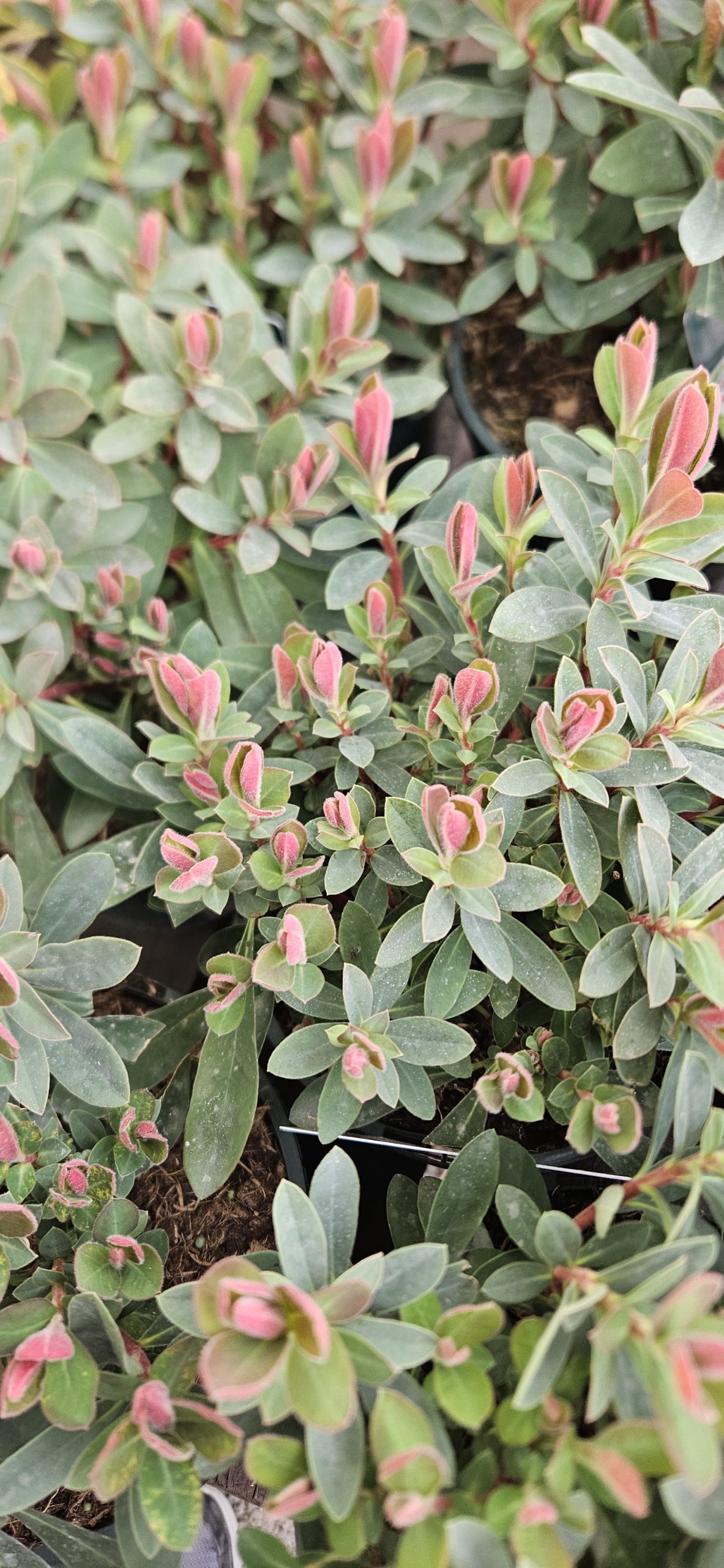 A stunning plant for year-round interest. The green bracts on this upright evergreen perennial mature to a wonderful glowing pink. The new foliage starts pink then matures to green. A long flowering period from winter to spring and again in summer. Height and Spread 50cm. Prefers full sun. Fertile, free-draining soil. Hardy.