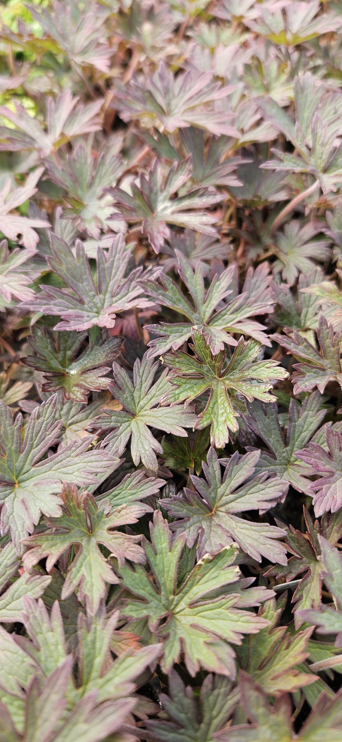 Hardy Geranium. Beautiful clusters of lavender-blue flowers with white veins set against stunning dark-purple foliage. Height 40cm. Spread 30cm. Flowers May to October. Full sun/partial shade. Hardy.