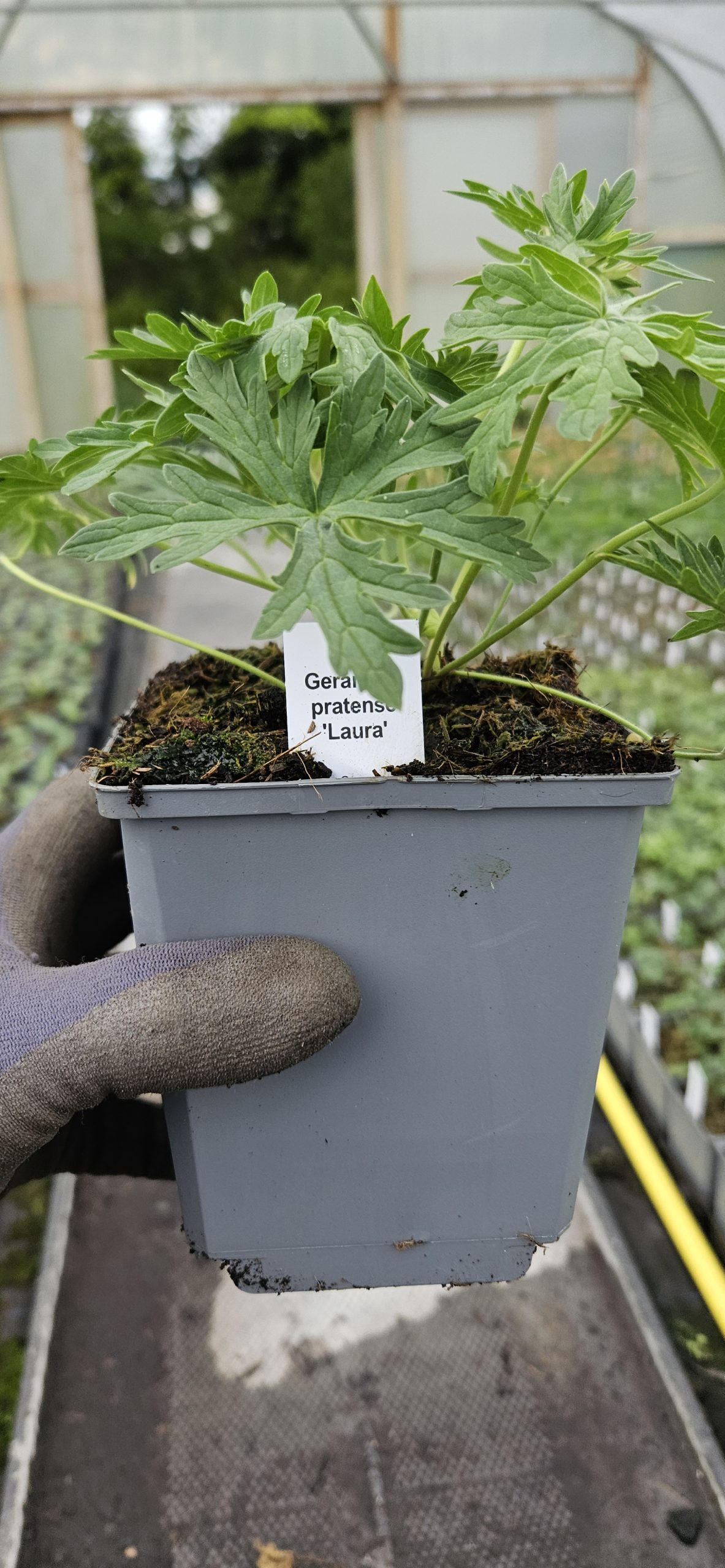 - Planting: Position Geranium pratense ‘Laura’ with the top of the root ball level with the soil surface, then gently backfill and firm to remove air pockets.
