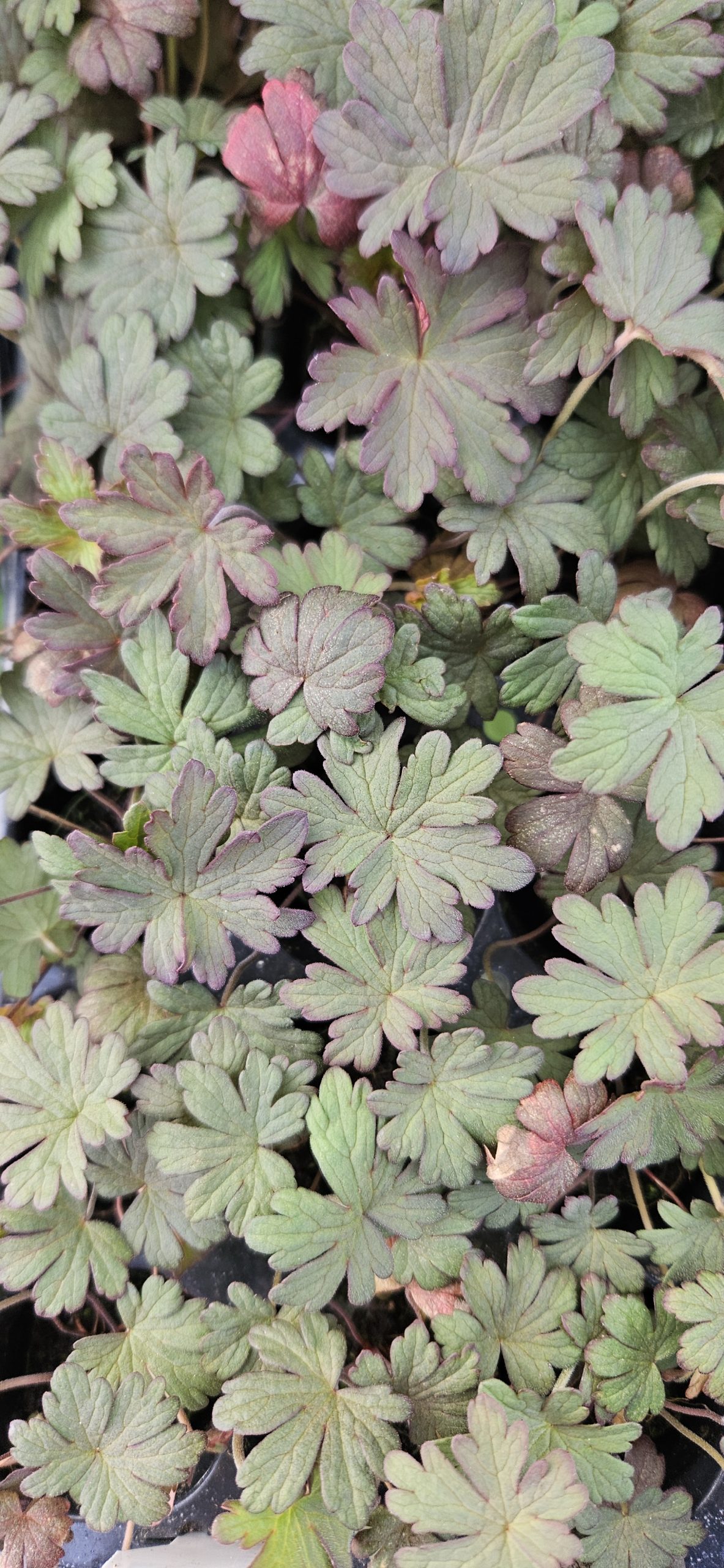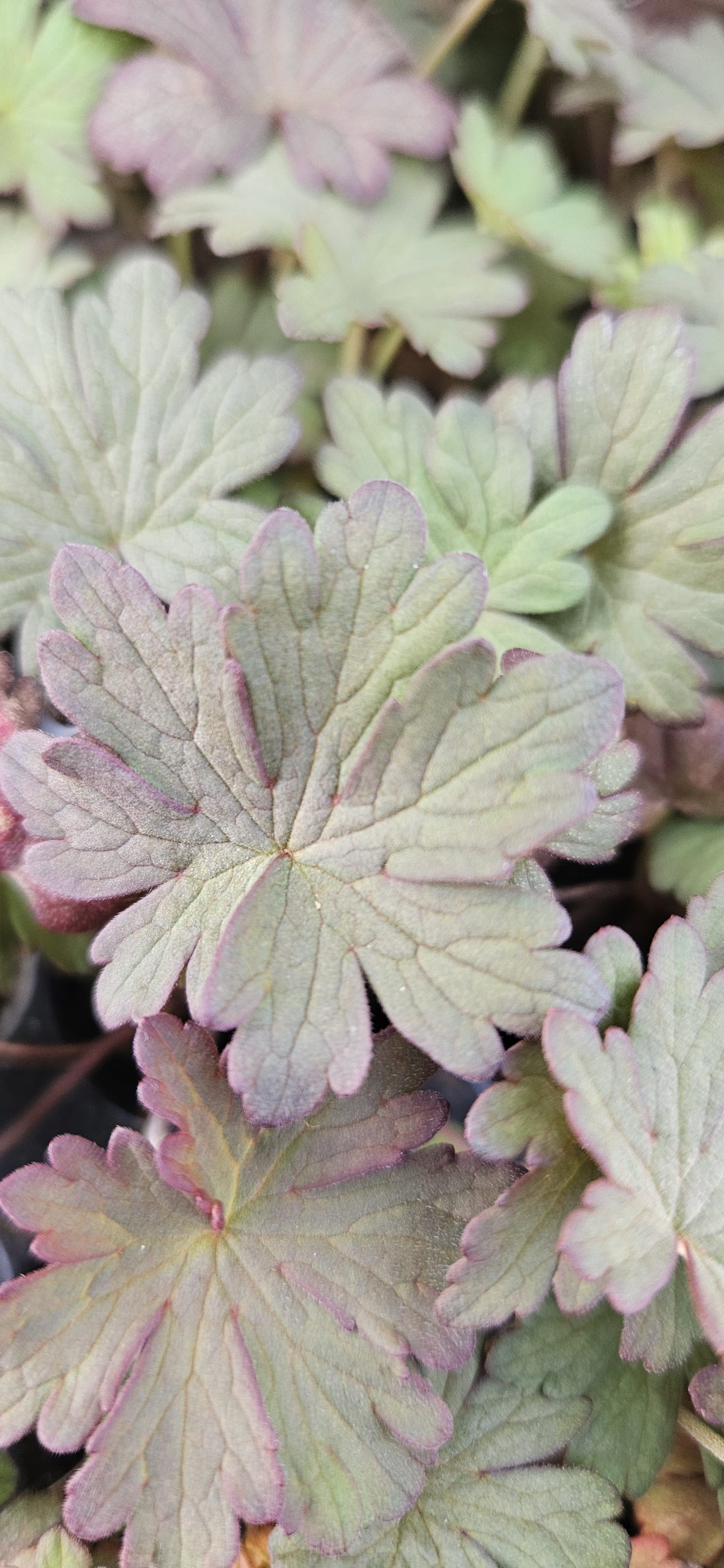 Hardy Geranium. Beautiful clusters of disc shaped flowers of the palest pink set against stunning pink/red foliage. Height 75cm. Spread 60cm. Flowers from May to July. Full sun/partial shade. Hardy.