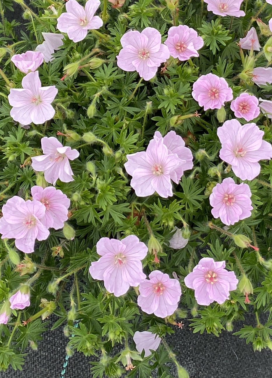 Geranium sanguineum ‘Frivolius Pink’ is a low, mat-forming perennial with finely cut foliage and soft pink flowers that bloom from late spring into summer. It is ideal for borders, rock gardens, and ground cover planting.
