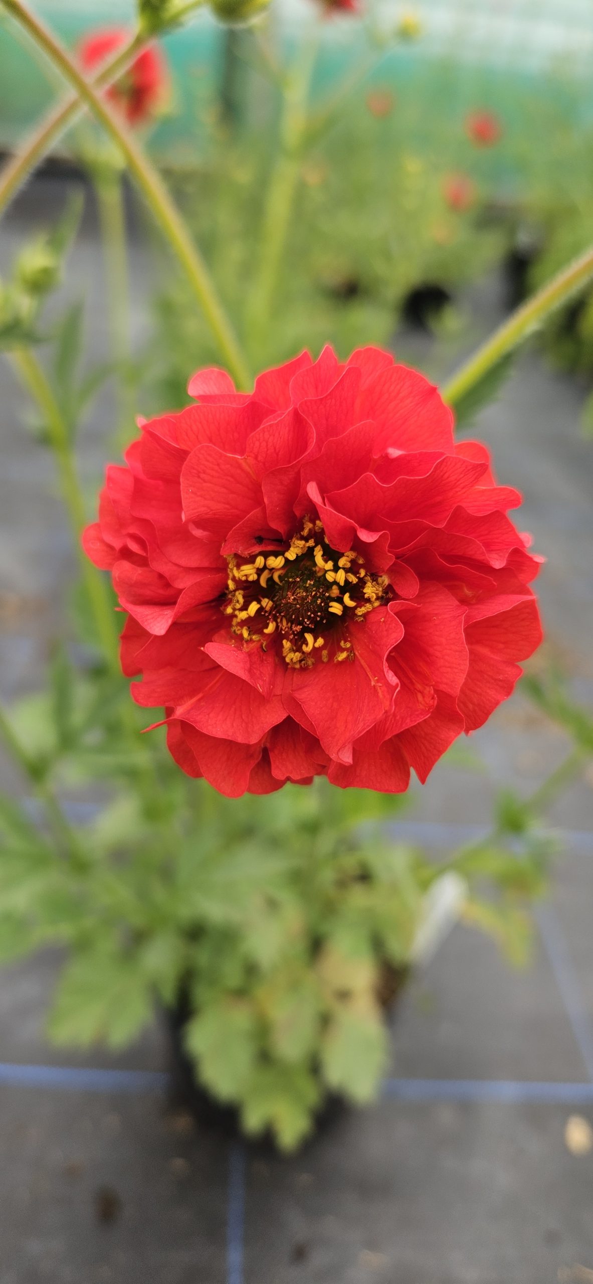 A clump-forming perennial producing striking, fiery red, semi-double flowers almost continually from April to September. Height and Spread 60cm. Sun/part shade. Fertile, well-drained, moisture-retentive soil. Hardy.