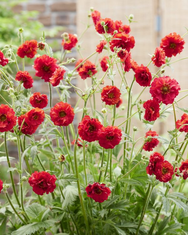 A clump-forming perennial with upright stems of ruffled, semi-double, fiery-red flowers. Height 50cm. Spread 35cm. Flowers almost continually from April to September. Full sun/part shade. Fertile, well-drained, moisture-retentive soil. Hardy.