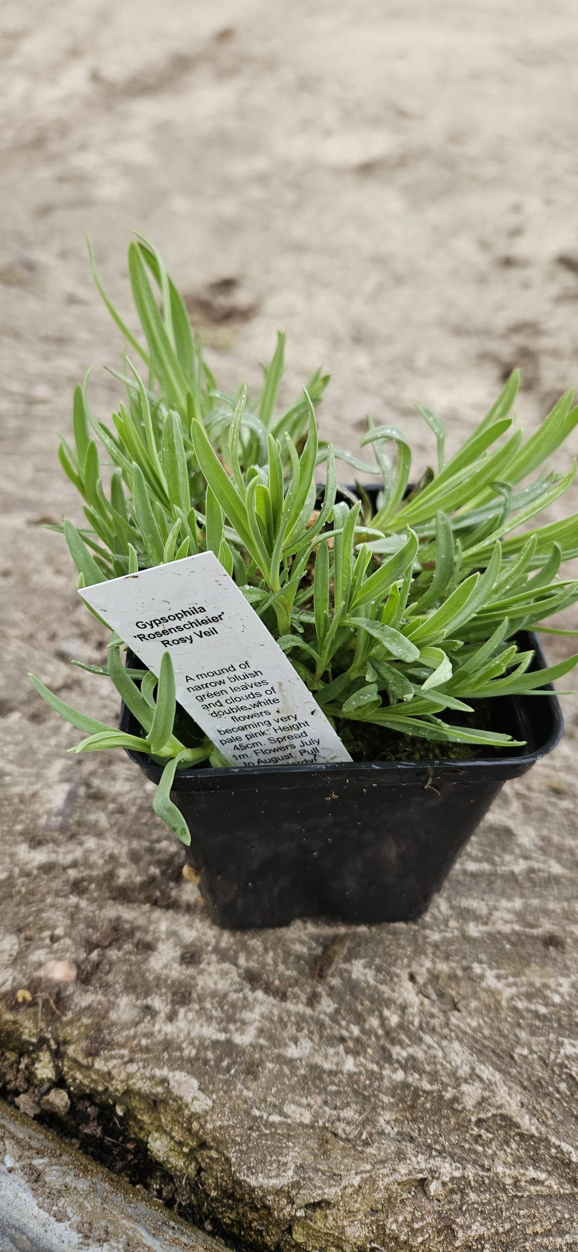A mound of narrow bluish green leaves and clouds of double white flowers becoming very pale pink. Height 45cm. Spread 1m. Flowers July to August. Full sun. Hardy.