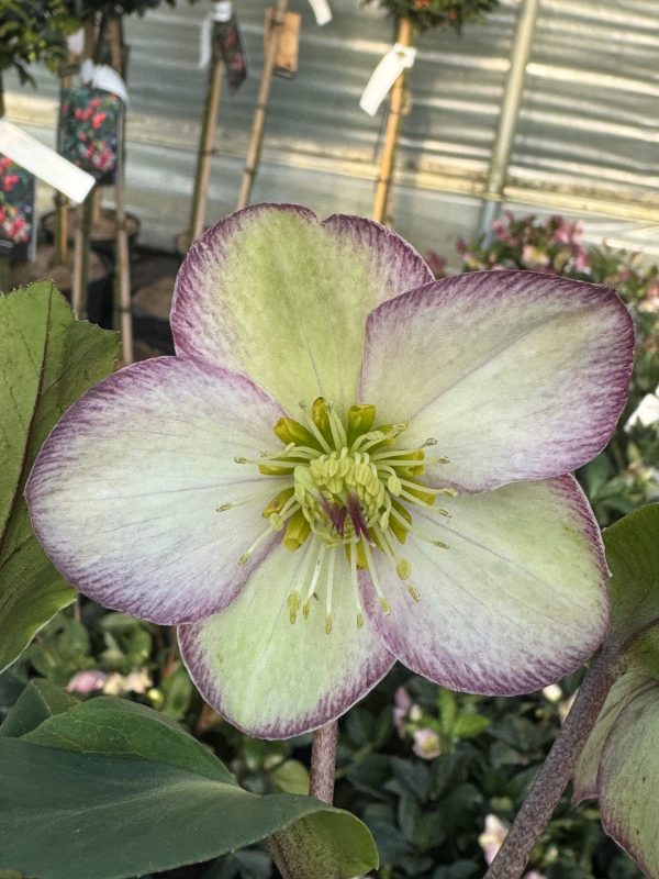 Helleborus Fire n Ice Rosado is a stunning evergreen perennial that brings vibrant winter and early spring interest to gardens. Its striking blooms feature soft darker edges that fade to cream, surrounding a bold yellow centre, creating a delicate yet captivating contrast. Ideal for borders, woodland gardens, or container displays. Helleborus Fire n Ice Rosado thrives in partial to full shade and prefers well-drained, fertile soil enriched with organic matter. Its long-lasting flowers and lush foliage make it a standout feature, offering a touch of elegance to any outdoor space during the cooler months.