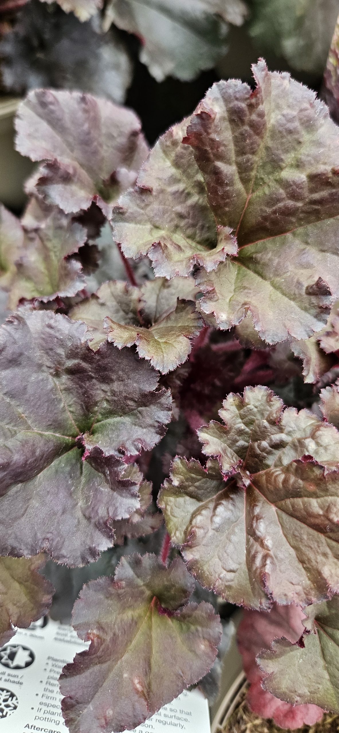An attractive mound of ruffled, deep purple foliage. A vigorous cultivar, forming a large, dense mound. Tall spires of cream flowers in late spring. Height 25cm. Spread 30cm. Full sun/partial shade. Hardy.