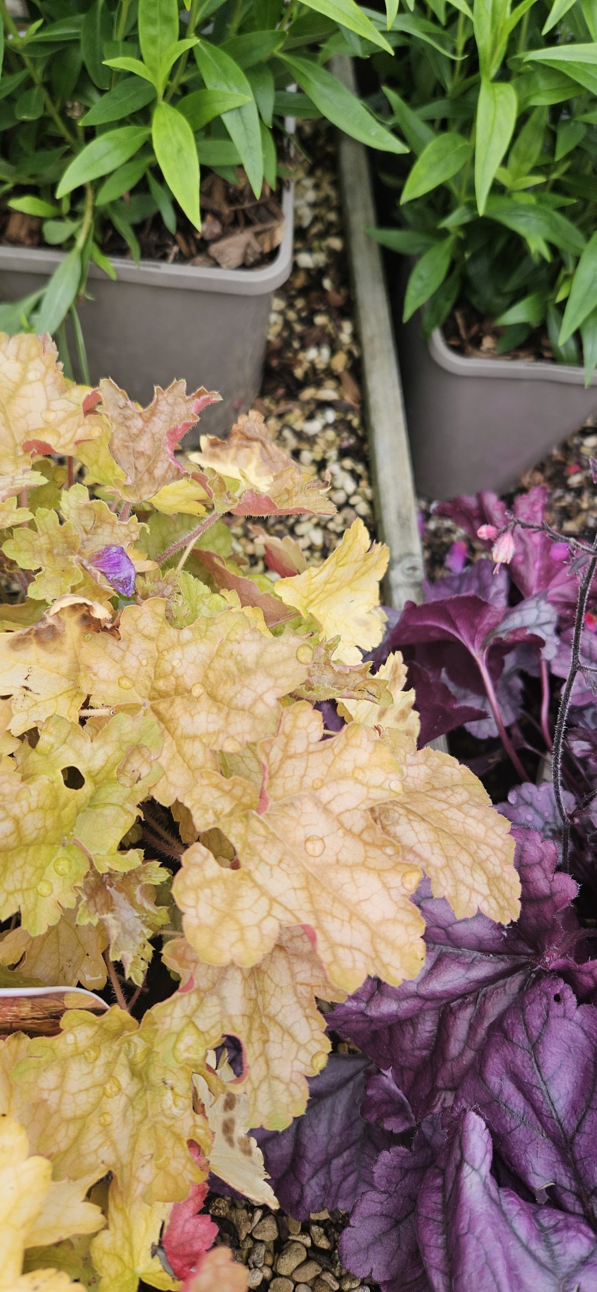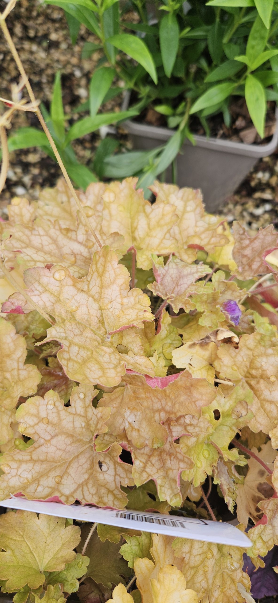 An attractive mound of ginger-coloured marbled foliage. Tiny, yellow-ginger and light-pink flowers on tall stems in summer. Height 30cm. Spread 40cm. Full sun/part shade. Hardy.