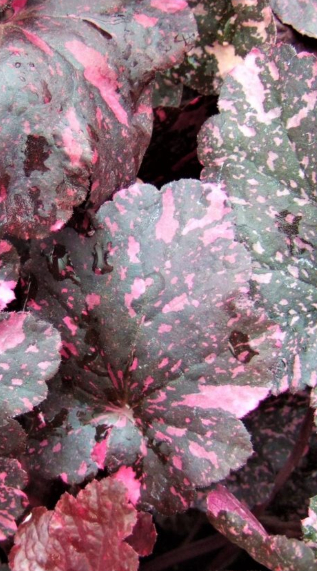 An attractive mound of dark burgundy foliage, heavily mottled with splashes of hot pink. Height 30cm. Full sun/part shade. Hardy.