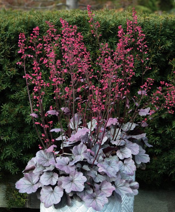 An attractive mound of reddish purple foliage, infused with silver. Airy sprays of small, rich pink flowers appear in summer. Height 50cm. Spread 40cm. Full sun/part shade. Hardy.