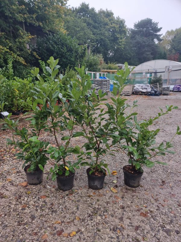 The common or Cherry Laurel is a vigorous, dense evergreen shrub with large, glossy, bright green leaves, which makes an ideal hedge. Suitable for normal to clay soils, full sun to full shade and inland or coastal sites. Fast growing, expect 30 – 60 cm per year. Easily maintained at 1 – 5M. Full sun/part shade. Hardy.