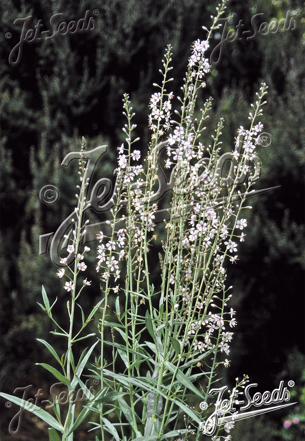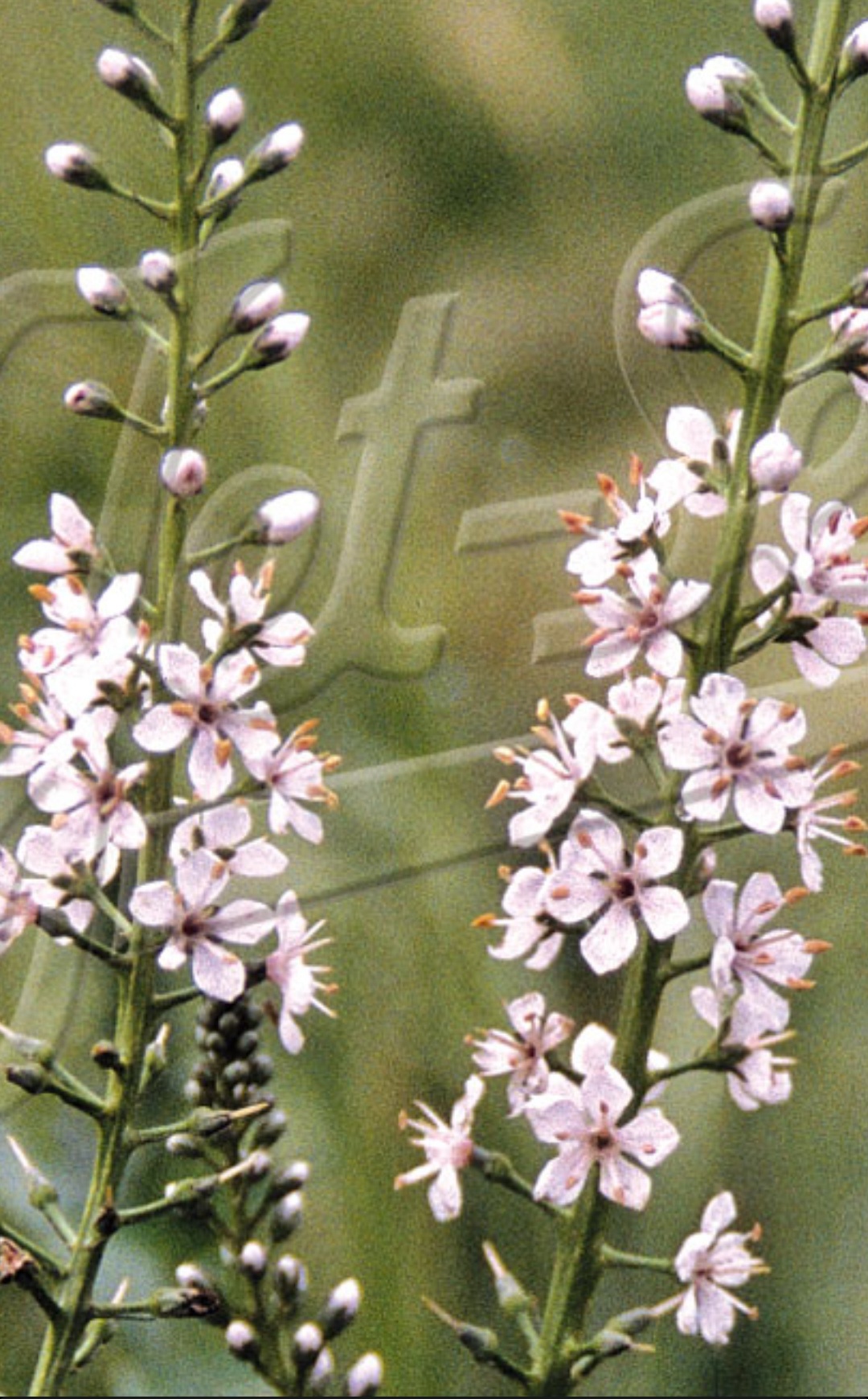 Loosestrife. A clump-forming perennial with narrow grey-green leaves and attractive spikes of white flowers. Height 1m. Spread 30cm. Flowers June to July. Full sun/partial shade. Hardy.