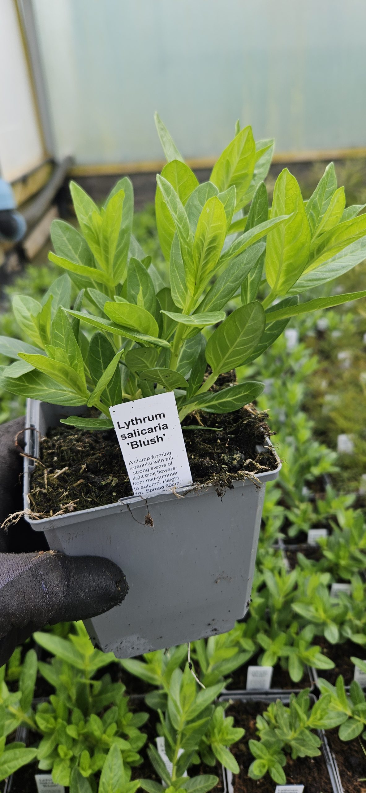 A clump forming perennial with tall, strong stems of light pink flowers from mid summer to autumn. Height 1m. Spread 60cm. Full sun. Prefers moist/boggy soil. Hardy. Attracts bees.