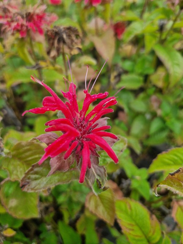 Bee Balm. An aromatic clump-forming perennial with large heads of bright pink flowers. Height 80cm. Spread 45cm. Flowers July to September. Full sun/dappled shade. Moist, well-drained soil. Hardy. Attracts bees and butterflies.