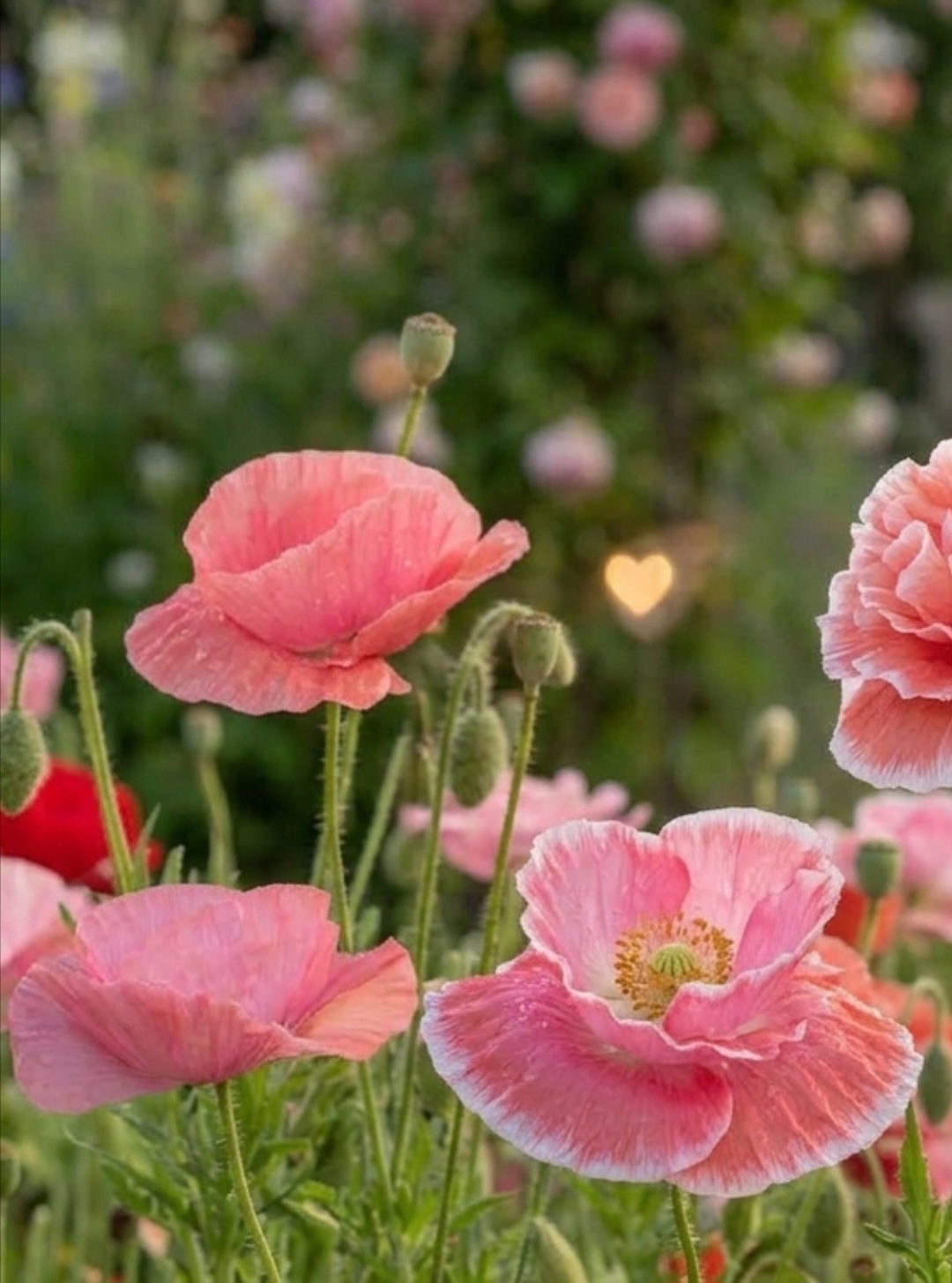 Papaver rhoeas ‘Falling in Love’ is a beautiful annual poppy that produces romantic pastel blooms throughout summer. Moreover, it is easy to grow and ideal for borders, wildflower gardens, and cottage garden planting schemes.