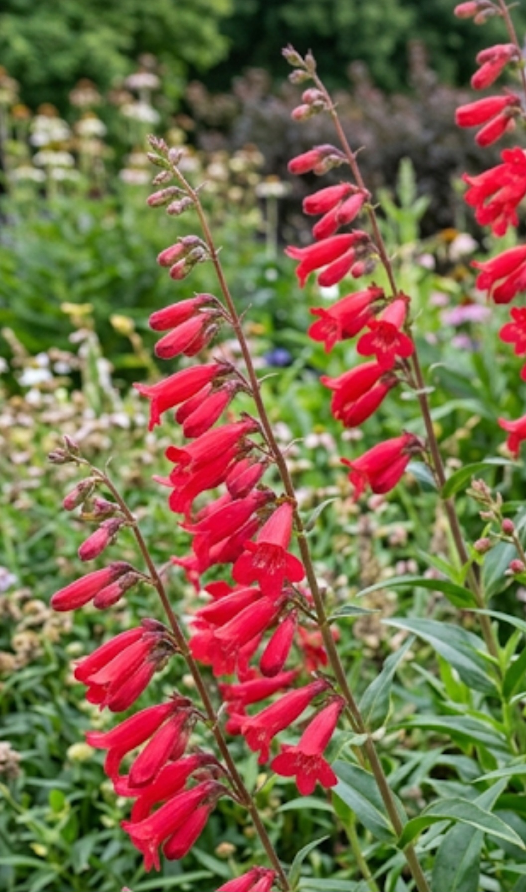 Penstemon ‘Windsor Red’ is a long-flowering perennial with rich red bell-shaped flowers, perfect for sunny borders and cottage garden planting.