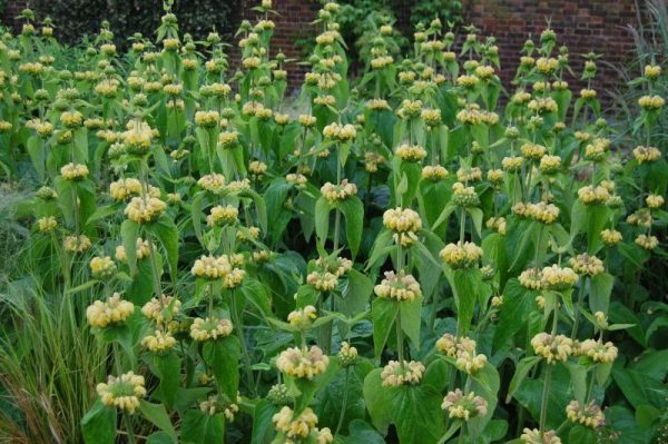 A vigorous spreading perennial that has a long flowering season and is drought tolerant, once established. From late spring through to early autumn, whorls of hooded creamy yellow flowers appear at intervals on tall, erect stems with dramatic, heart shaped leaves. Height 90cm. Spread 70cm. Full sun. Hardy.