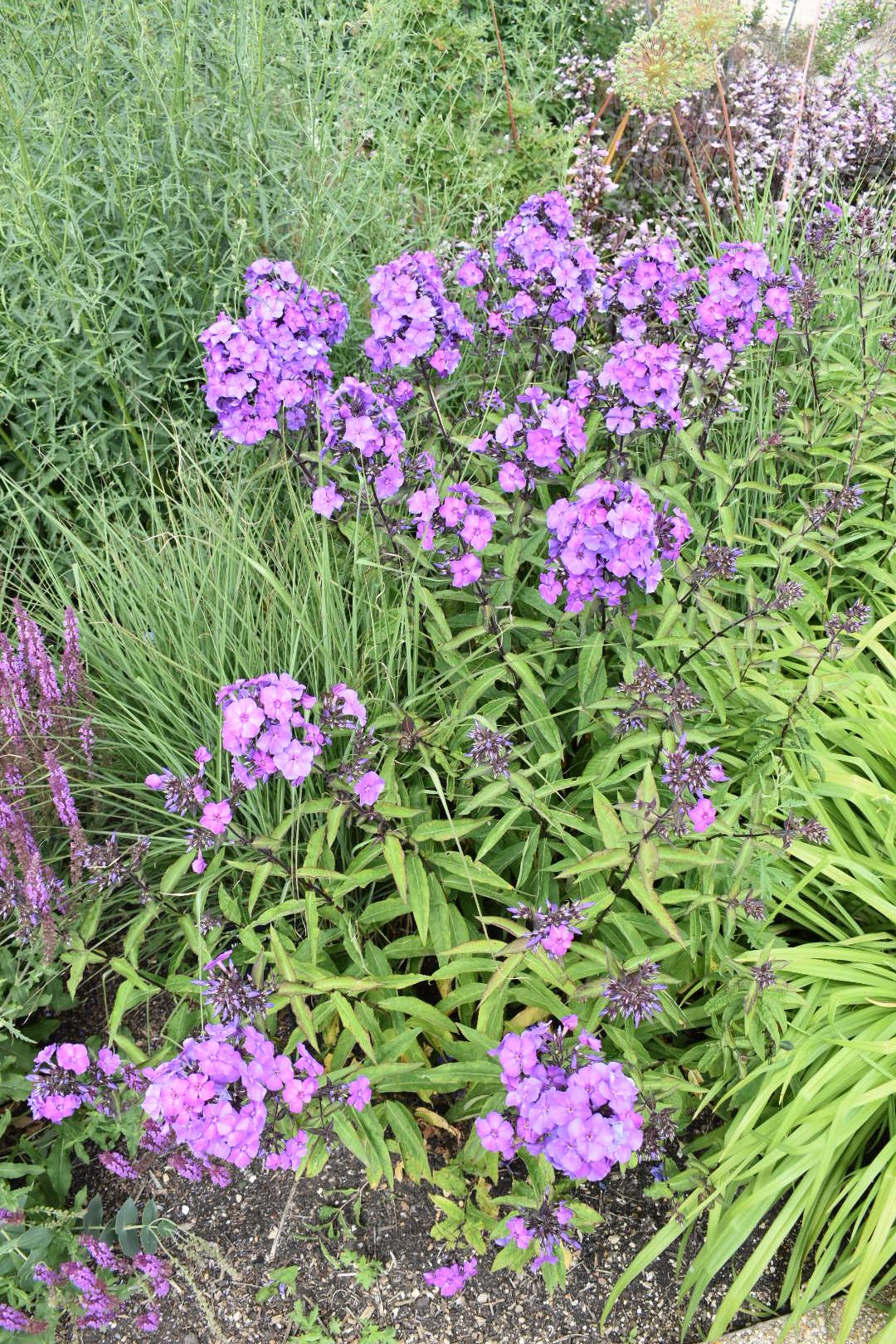 An erect perennial with narrow green leaves and fragrant clusters of violet-blue flowers, each with a darker eye in mid-summer and early autumn. Height 90cm. Spread 60cm. Flowers July to September. Full sun/partial shade. Hardy.