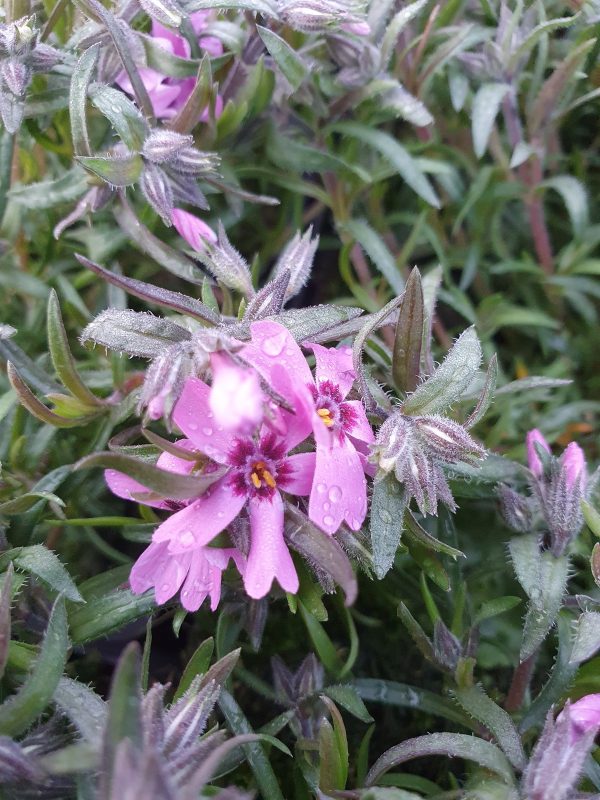 A spreading perennial with a cushion of dense green foliage smothered in a mass of bright pink flowers with a dark eye in spring. Height 10cm. Spread 50cm. Full sun, well-drained soil. Hardy.