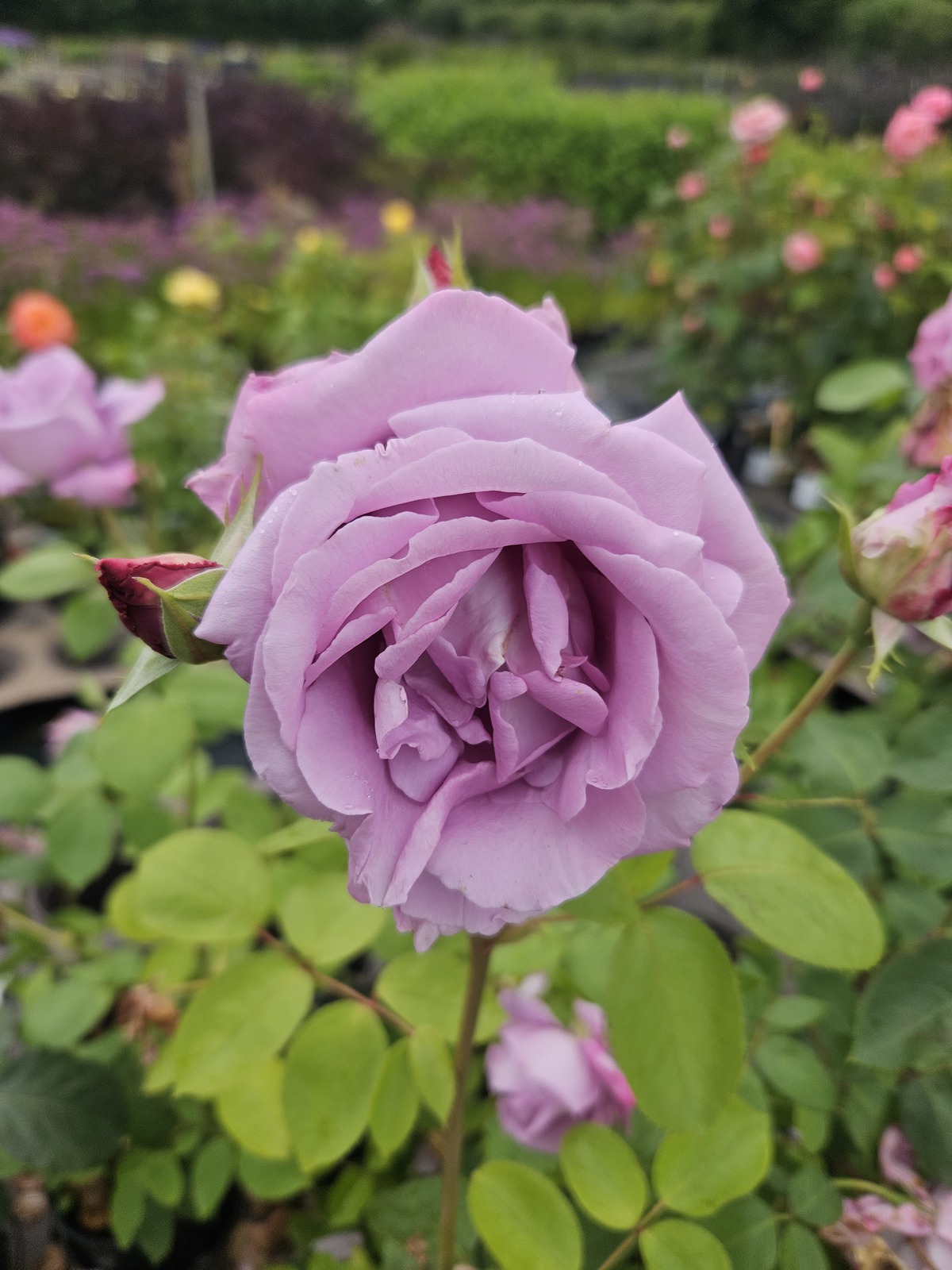 A fragrant, large flowered bush rose with dark green leaves. Pretty fully double, lilac-mauve flowers, produced from summer to autumn. Max Height 1m. Max Spread 75cm. Flowers June to September. Full Sun. Hardy.