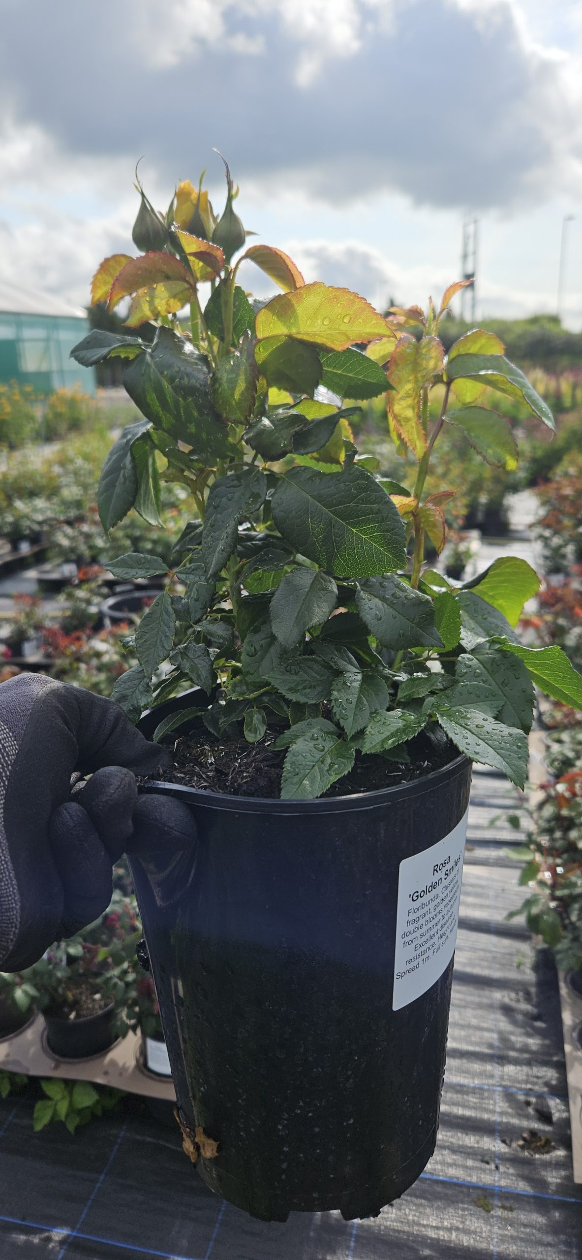 Floribunda. Clusters of fragrant, golden yellow, double blooms repeatedly from summer to autumn. Excellent disease resistance. Height and Spread 1m. Full sun. Hardy.