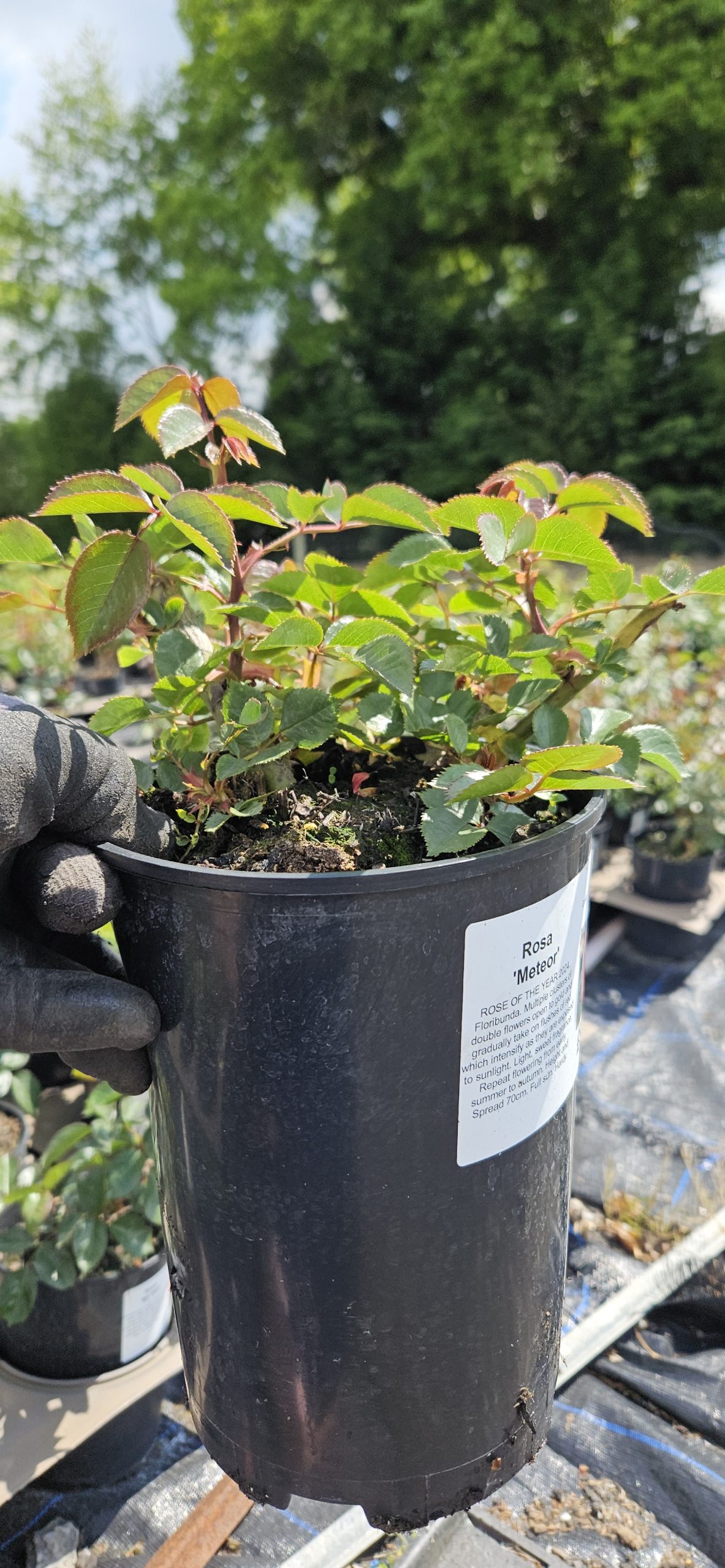- Staking: Rosa ‘Meteor’ typically has sturdy stems, but staking may be necessary in areas with high winds. If your plant is heavy with blooms, consider adding supports to prevent damage from storms.
