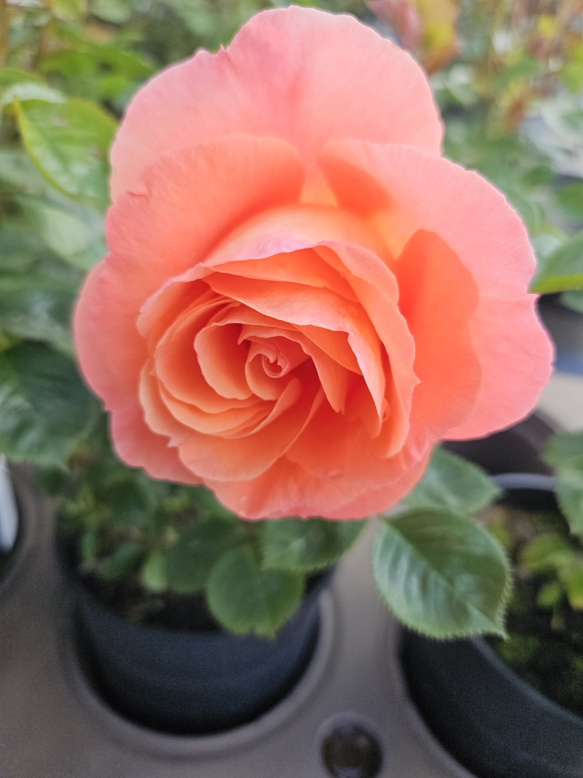 Floribunda. A beautiful repeat flowering variety with clusters of tangerine orange flowers and a nice perfume. High disease resistance. Height 120cm. Spread 60cm. Flowers June to November. Full sun. Hardy.
