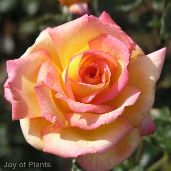 Floribunda. Pretty double, yellow flowers, edged red, produced continually from summer to autumn. Beautiful perfume. Height 75cm. Spread 60cm. Full sun. Hardy.