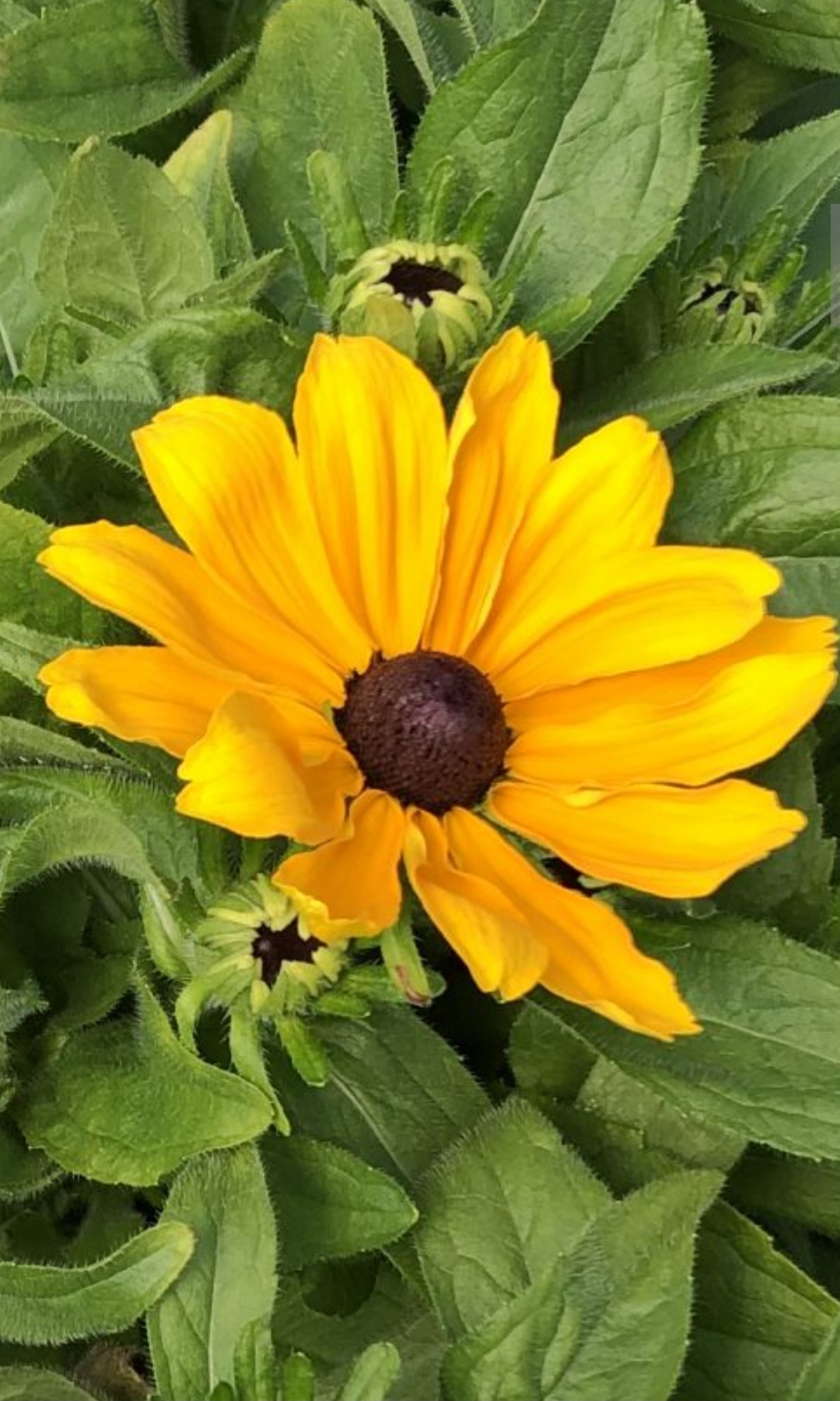 Large golden yellow blooms with contrasting dark centres, makes this a striking plant for the border. It has a long flowering period from July to October. Full sun.
