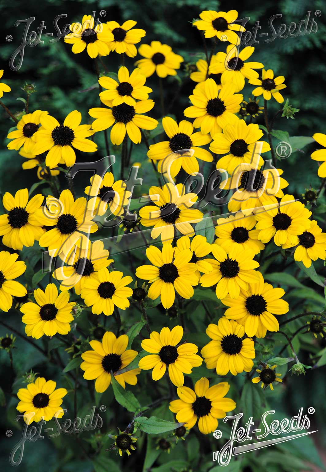 A majestic perennial producing masses of cheerful, golden-yellow flowers with black cones on sturdy tall stems. Long flowering period from June to October. Self seeds. Height 1m. Spread 70cm. Full sun. Hardy.