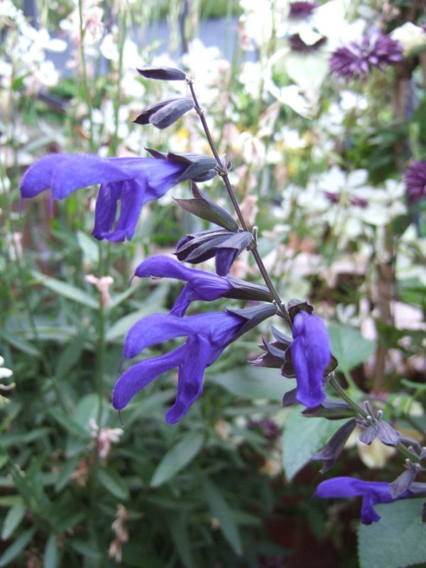 A stunning, blue form of the very popular Salvia ‘Amistad’. Spikes of rich blue flowers set off by bright green foliage from early summer to late autumn. Long flowering period. Height 1.5m. Spread 90cm. Full sun/partial shade. Well drained soil. Hardy. Attracts bees.