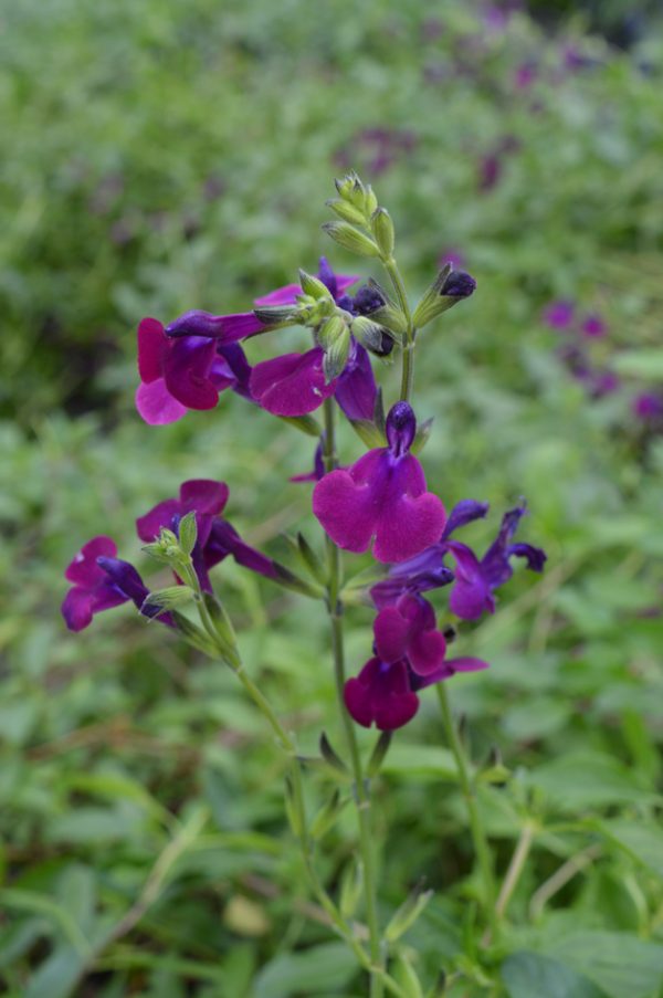 A woody-based perennial with small, aromatic leaves. Produces an abundance of maroon-purple blossoms on tall spikes from July to October. Height 50cm. Spread 40cm. Full sun/partial shade. Well drained soil. Hardy.