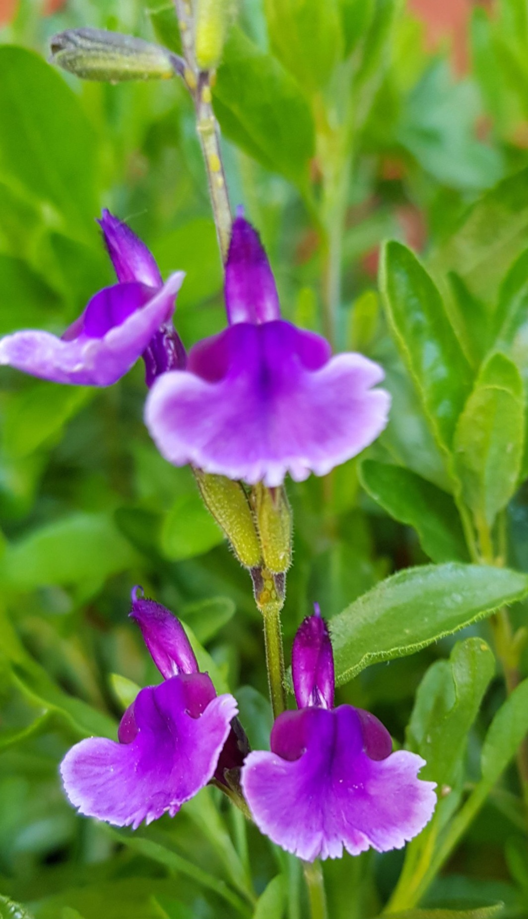 An upright, shrubby perennial with scented foliage. Spikes of lilac-purple flowers flushed white at the edges from early summer to autumn. Height 1m. Spread 75cm. Full sun/partial shade. Well-drained soil. Hardy. Attracts bees.