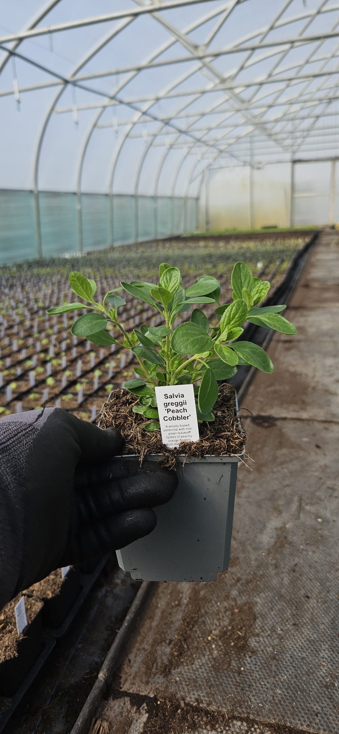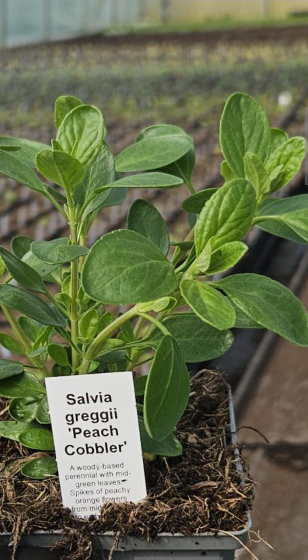 An upright, shrubby perennial with aromatic, mid-green leaves. Spikes of peachy-orange flowers with dark stems from mid-summer to early autumn. Height 50cm. Spread 40cm. Full sun/partial shade. Hardy. Attracts bees.