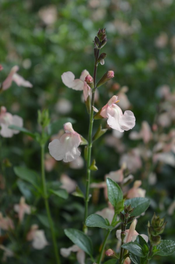 An upright, shrubby perennial with aromatic, mid-green leaves. Spikes of soft-peach flowers with pastel tones on dark stems from mid-summer to early autumn. Height 50cm. Spread 40cm. Full sun/partial shade. Hardy. Attracts bees.