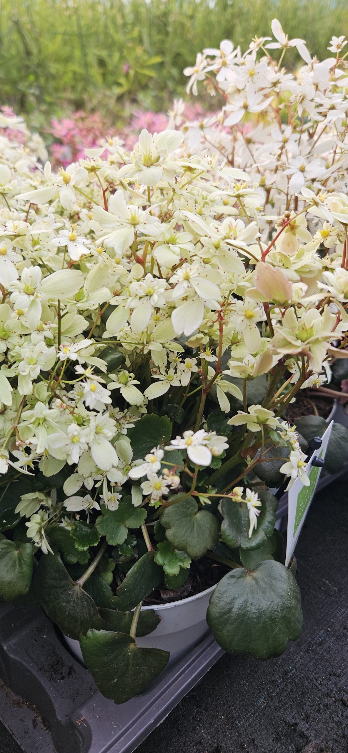 Saxifraga Dancing Pixies ‘Tracie’ is a hardy, low-maintenance perennial that brings late-season colour and elegance to shaded areas. Whether planted in borders, rockeries, or pots, Saxifraga Dancing Pixies ‘Tracie’ rewards you with dense clusters of delicate blooms and rich foliage. With proper planting, feeding, and care, your Saxifraga will thrive year after year, adding charm and texture to your garden well into autumn.