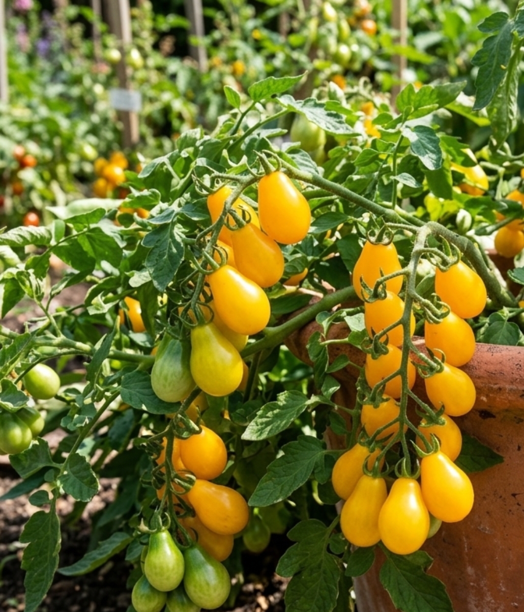 • Warm Periods: Plants in baskets may require frequent watering to keep Tomato ‘Peardrops’ healthy and productive.